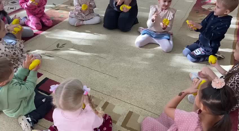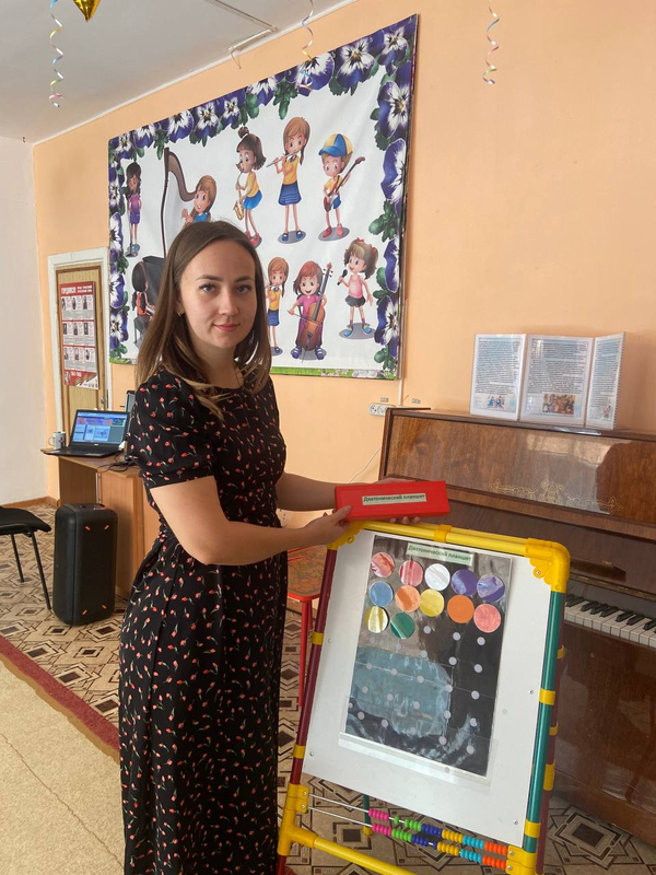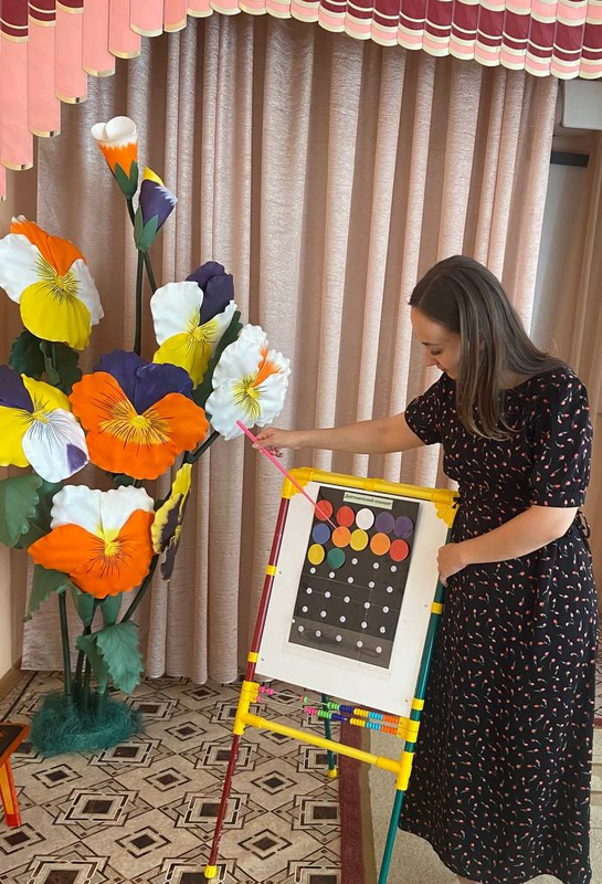 Ведя указкой по нужным цветам, дети играют в правильном порядке и быстрее запоминают последовательность игры своего колокольчика.