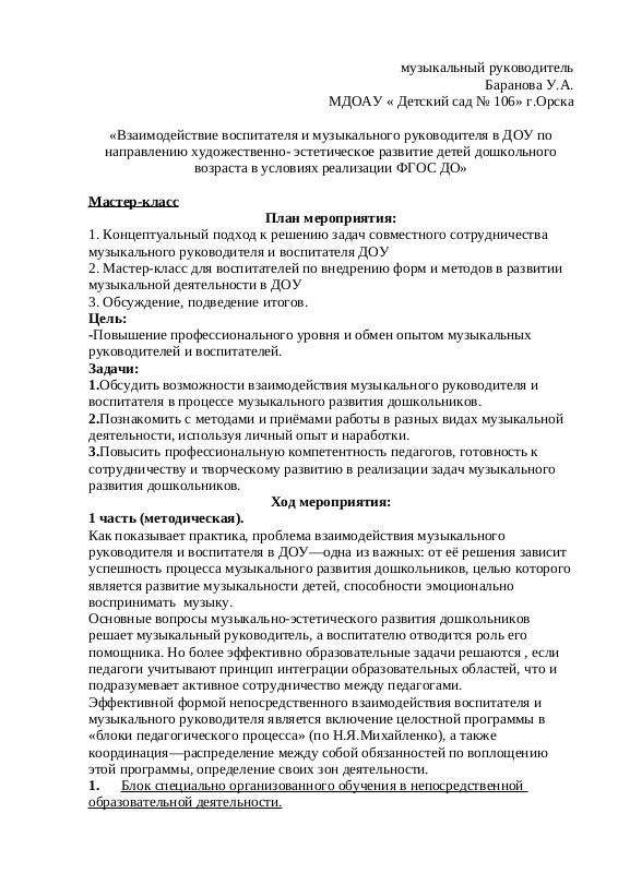 Доклад. Мастер - класс на базе МДОАУ № 106", в рамках ГМО